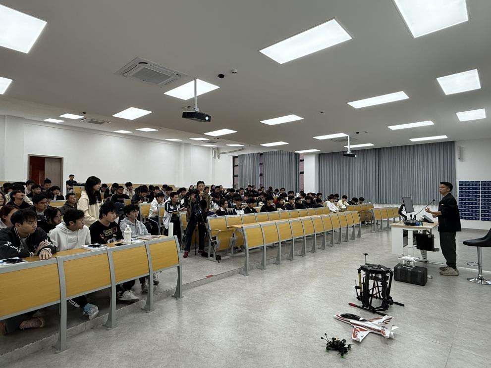 为深化产教融合,让学生及时了解行业前沿动态,明确职业规划方向,我院于2025年11月25日特邀能飞无人机企业资深工程师江卓鸿,为未来技术应用学院无人机专业的学子们带来了一场题为《无人机应用》的精彩讲座。讲座现场座无虚席,气氛热烈。