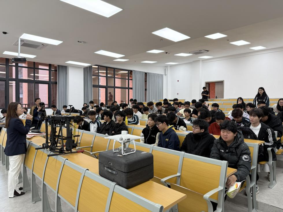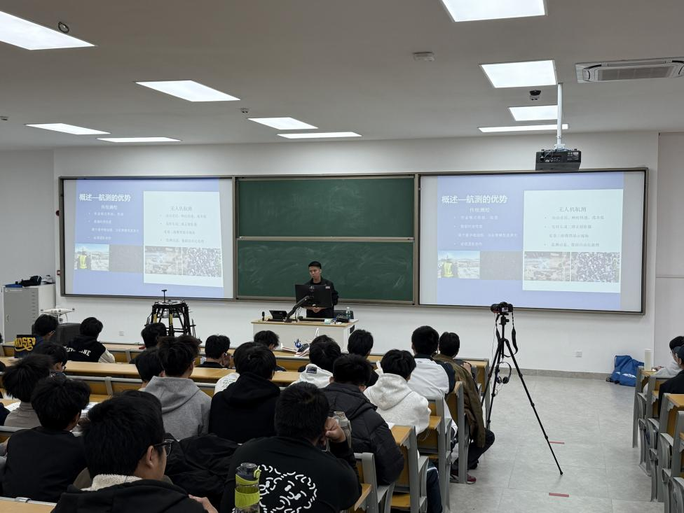 讲座伊始,江老师首先打破了同学们对无人机“等于航拍玩具”的固有印象。他通过大量真实的项目案例和震撼的现场影像,生动展示了无人机如何化身“空中守护者”与“大地测绘师”。