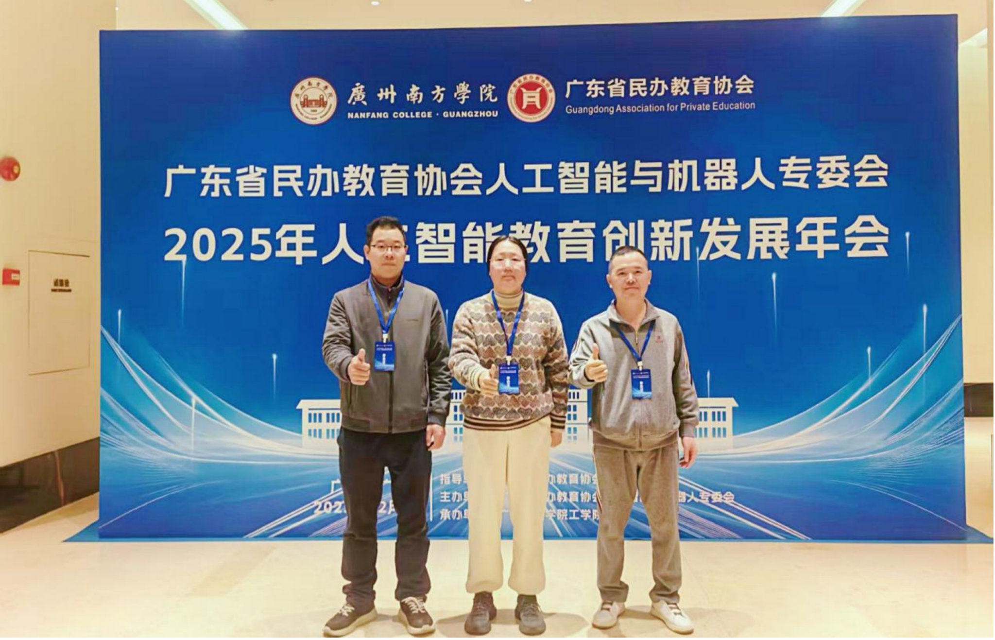 2025年12月6日,为深化产教融合并紧跟人工智能技术发展浪潮,推动我院相关专业的高质量建设与发展,未来技术应用学院副院长郑永芹携姚袁、潘伟祥两位老师前往广州从化,出席了由广东省民办教育协会人工智能与机器人专委会主办的“AI赋能教育创新·智慧引领未来”2025年年会。此次盛会汇聚了全省乃至全国人工智能教育领域的专家学者、院校代表及行业精英,共同探讨人工智能技术赋能教育创新的路径与未来。
