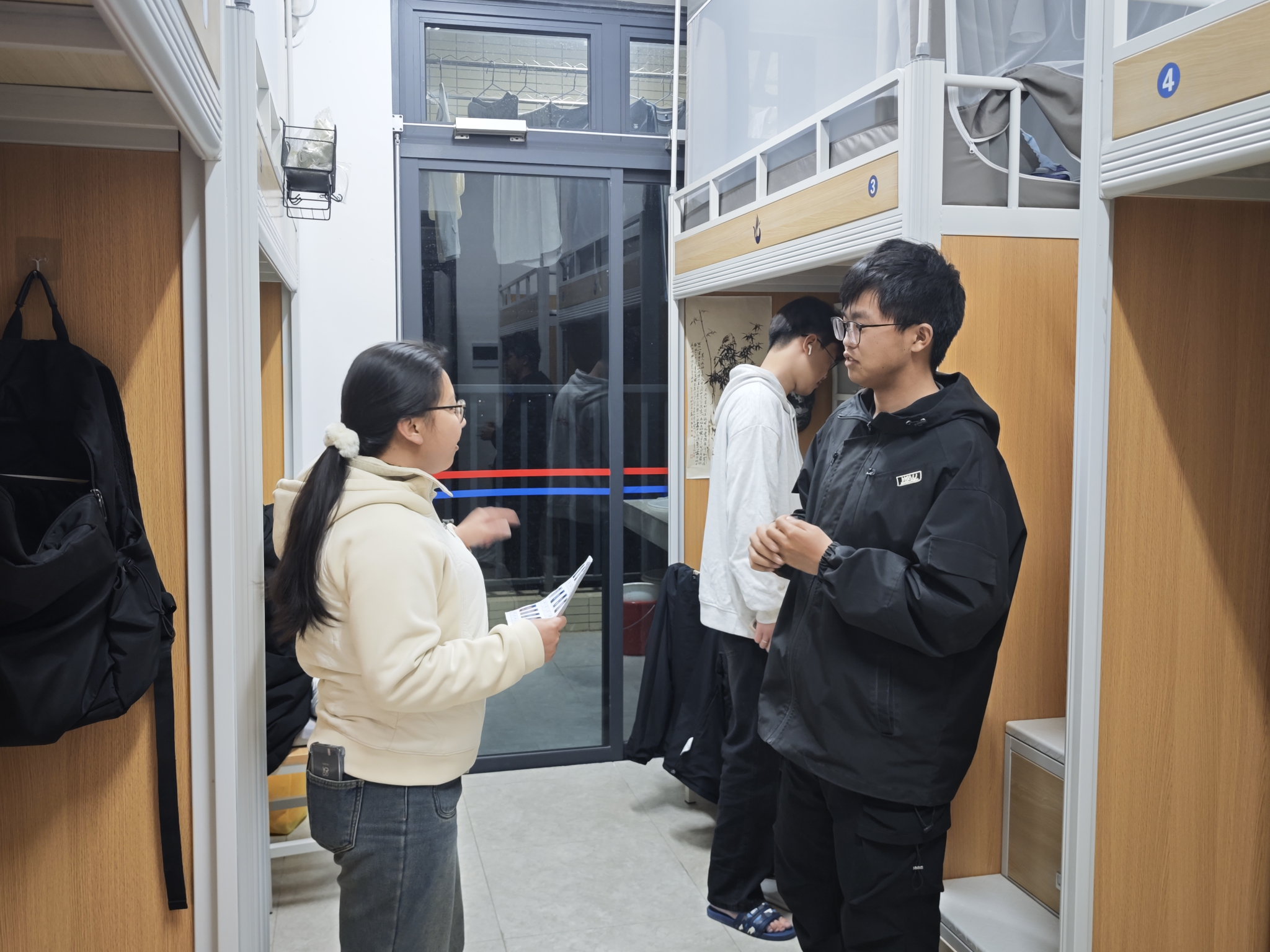 走访过程中,老师们与同学们亲切交流,详细询问了大家的假期生活、返校情况及新学期的学习规划,并叮嘱同学们要尽快调整状态,以饱满的精神面貌迎接新学期的挑战。同时,老师们还仔细检查了宿舍的卫生、安全状况,提醒同学们注意用电安全、保持宿舍整洁,营造良好的生活环境。