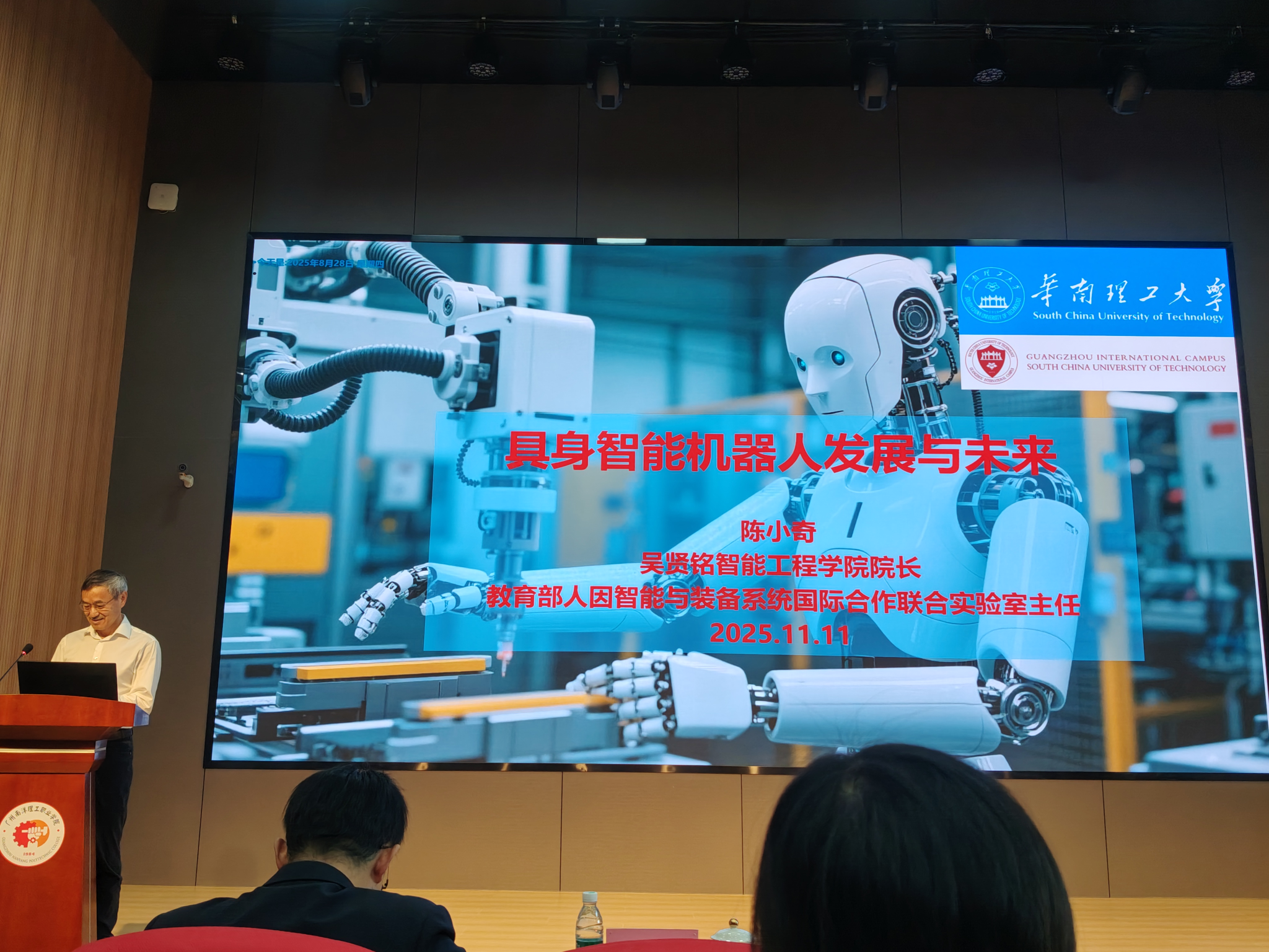 在省科协的领导和支持下,广东民办高校科协联盟于2025年11月11日举办“院士讲坛”,该论坛由新西兰皇家科学院院士、新西兰工程院院士、华南理工大学吴贤铭智能工程学院院长陈小奇先生作《具神智能机器人》专题报告。