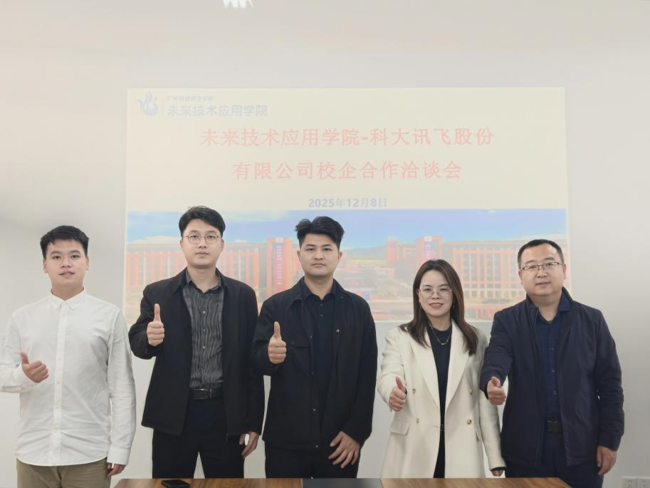 为精准对接人工智能领域产业需求,探索多元化产教合作模式,2025年12月8日,科大讯飞股份有限公司代表麦丹、陈升彬到访广州城建职业学院未来技术应用学院开展专项合作洽谈,院长潘丹、副院长肖铮及校企合作专员伍逍遥出席会议,围绕产业学院建设、人才培养、实训基地搭建等核心议题深入交流。