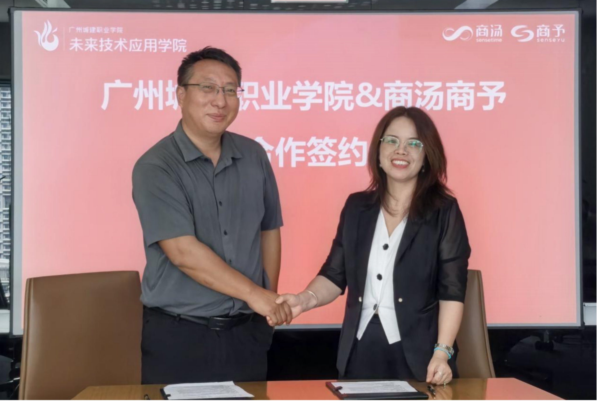 2025年9月16日,广州——为深化产教融合、培养人工智能领域高素质技术人才,广州城建职业学院未来技术应用学院院长潘丹率队赴商汤科技开展校企合作洽谈,并与商汤集团正式签署“商予人工智能订单班”共建协议。商汤科技教育事业部总经理马振瑞、校企合作总监罗辉艳及学院人工智能教研室主任姚袁、专任教师王金、才洋等共同出席签约仪式。