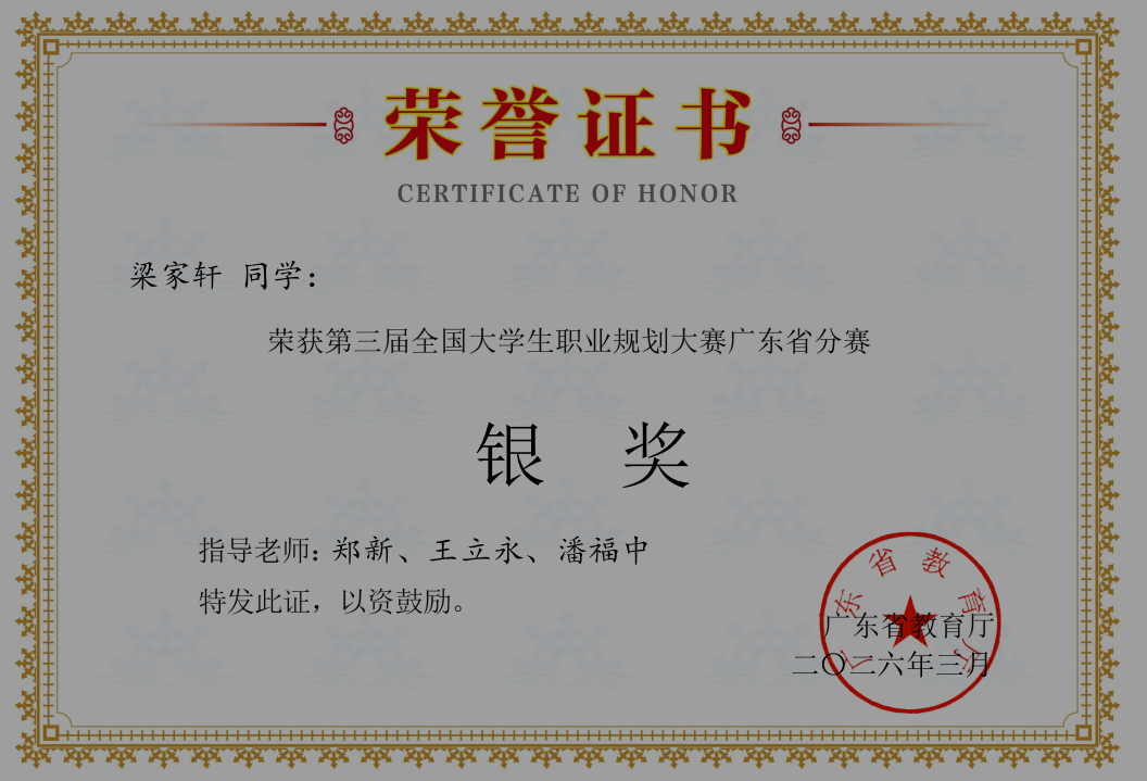 喜报!我院学子梁家轩在第三届全国职业规划大赛 广东省分赛斩获银奖