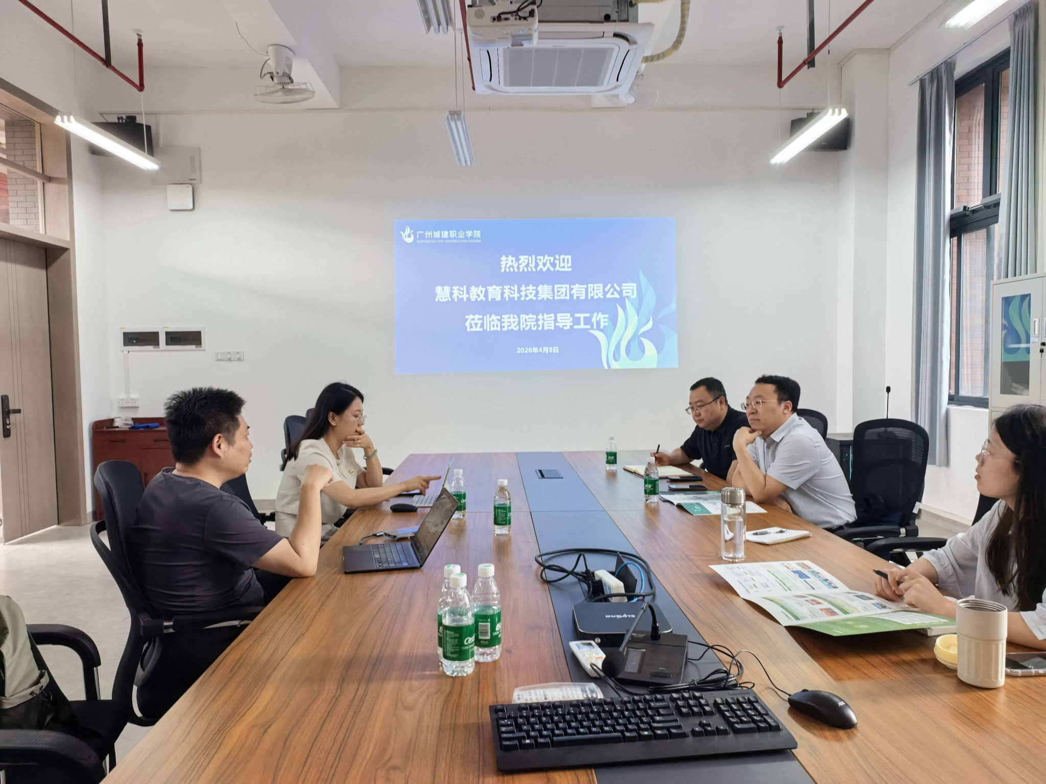 为深入推进产教融合,探索人工智能与职业教育协同发展的创新路径,2026年4月9日,慧科教育科技集团有限公司(以下简称“慧科集团”)一行到访广州城建职业学院未来技术应用学院,双方在清远校区举行了座谈交流。此次来访围绕订单班人才培养、横向课题合作及具身智能机器人产业学院共建等议题展开深入探讨,为后续校企务实合作奠定了坚实基础。
