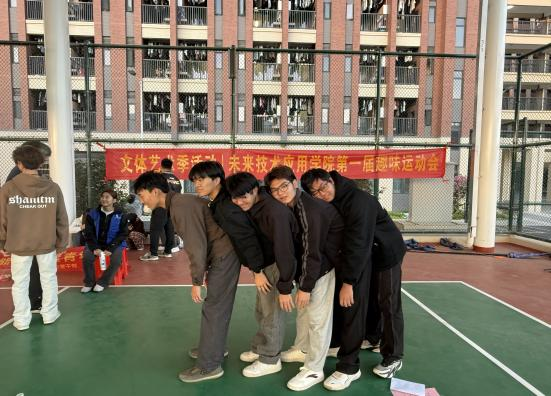 为了充实同学们的课余生活,营造浓厚的校园体育文化,促进大学生身心健康的发展,同时构建团结友爱的校园气氛,未来技术应用学院团委于2025年11月20日在清远校区风雨篮球场举办了未来技术应用学院第一届趣味运动会。