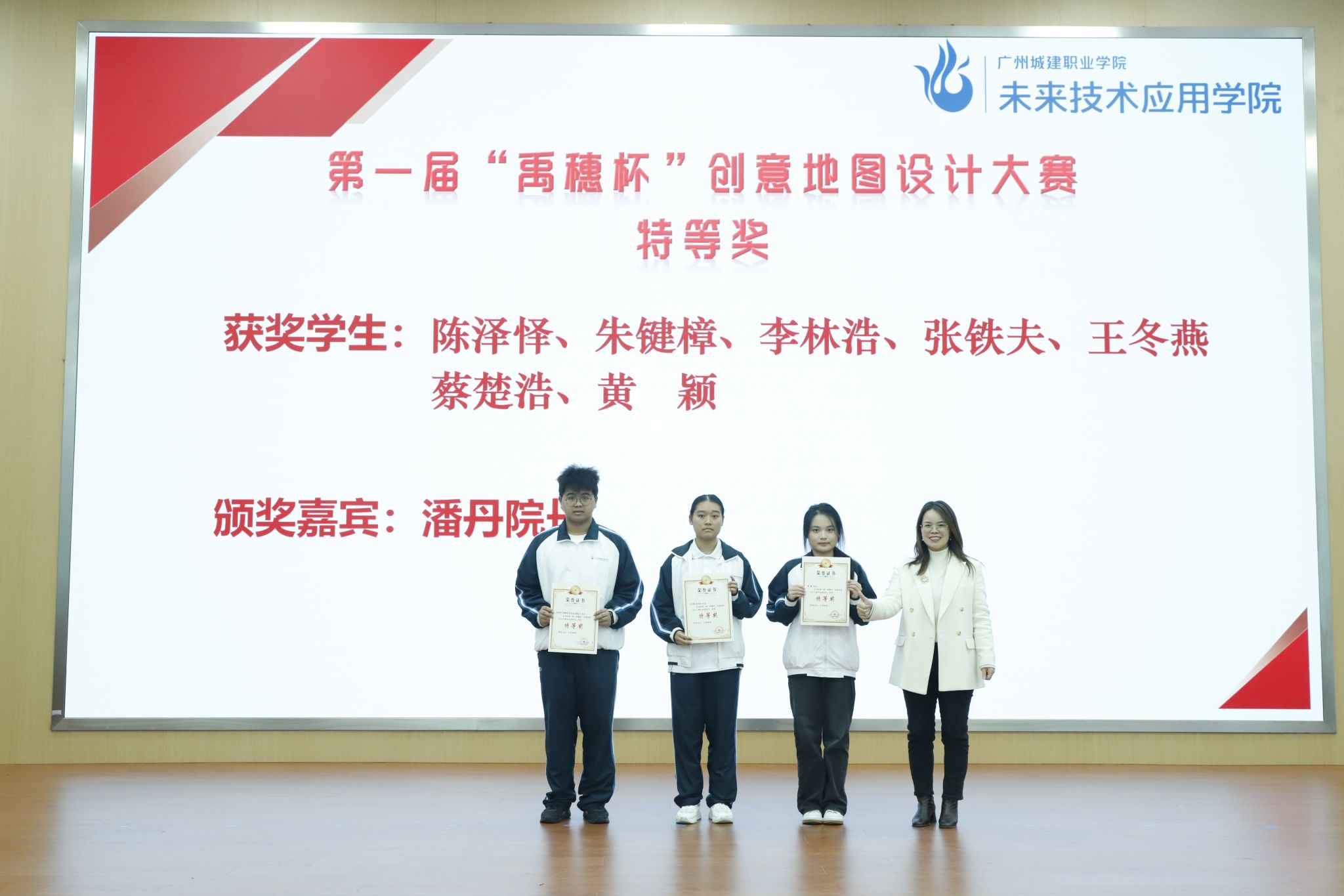 潘丹院长为“禹穗杯”特等奖学生颁奖