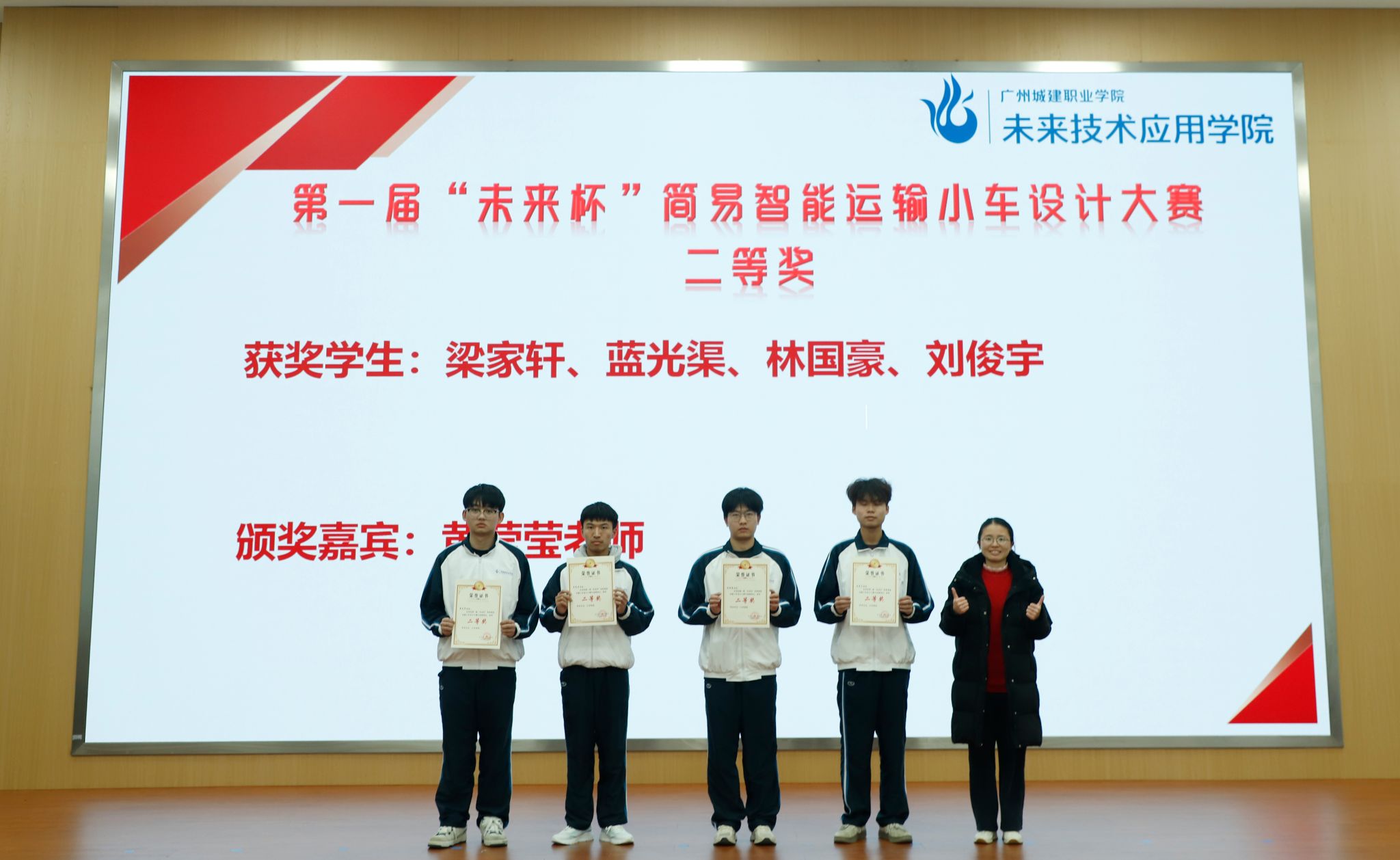 黄莹莹老师为“未来杯”二等奖学生颁奖