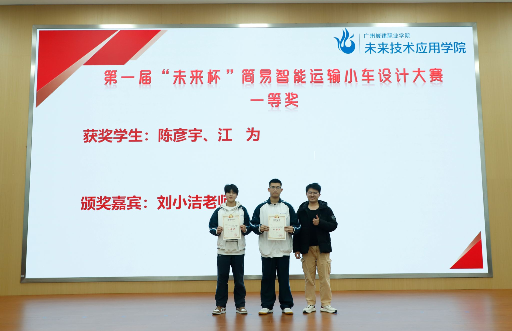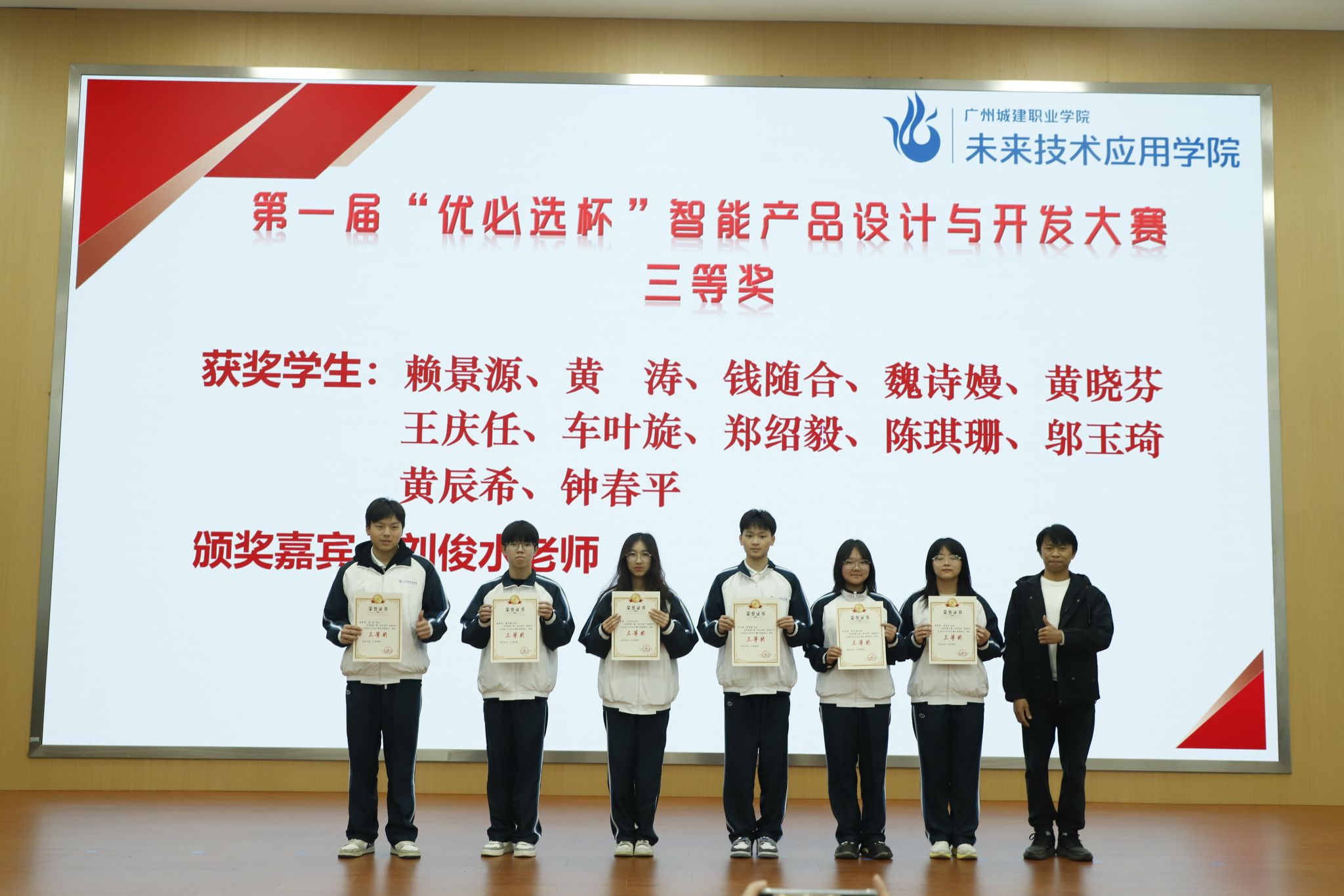 刘俊水老师为“优必选杯”三等奖学生颁奖