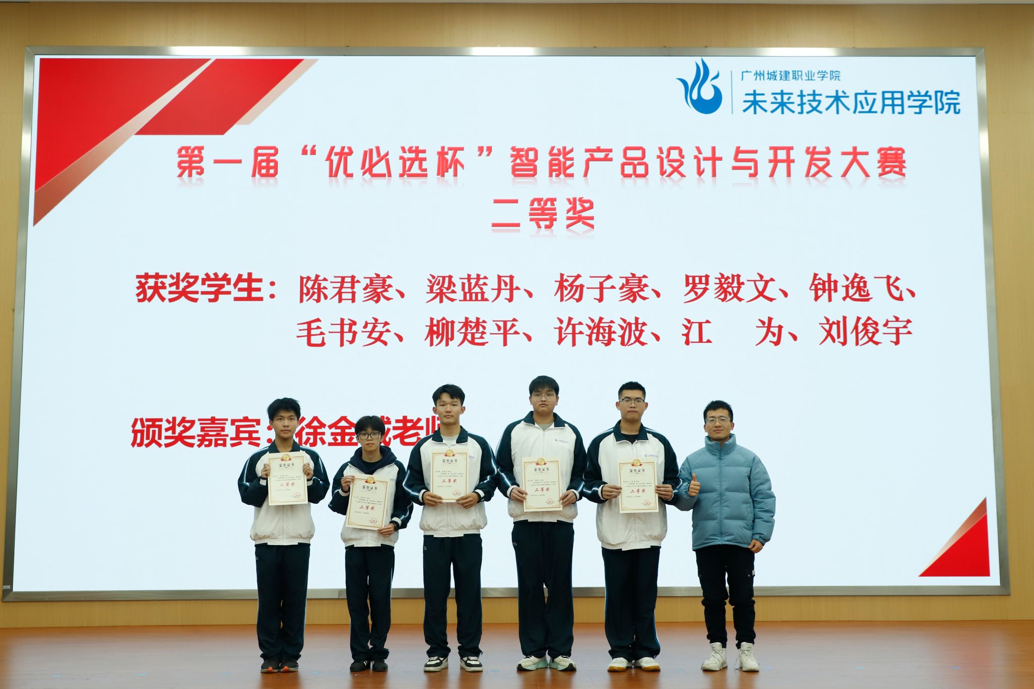 徐金诚老师为“优必选杯”二等奖学生颁奖