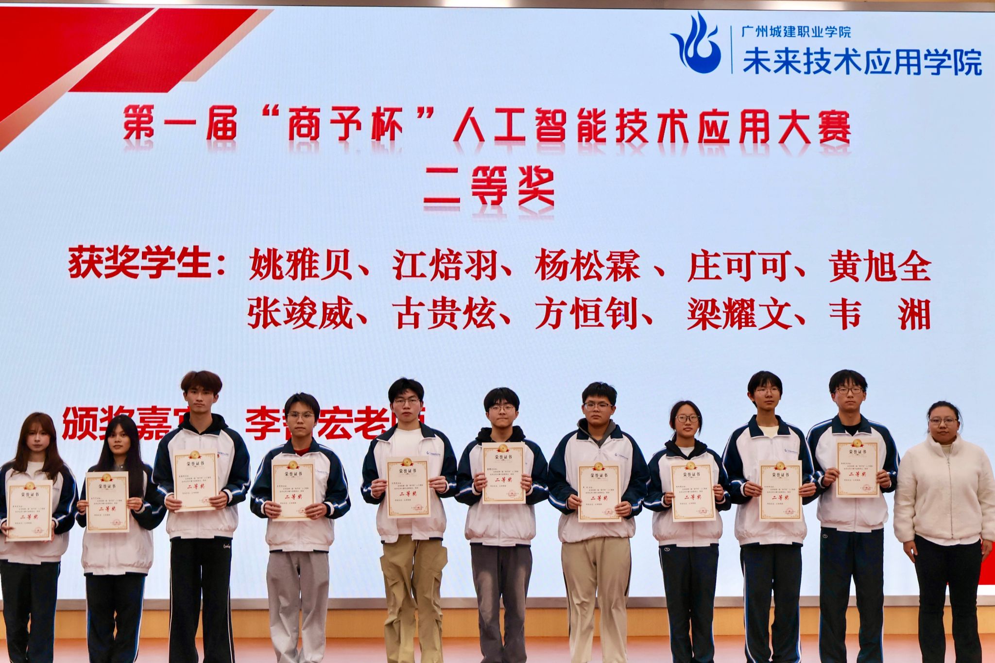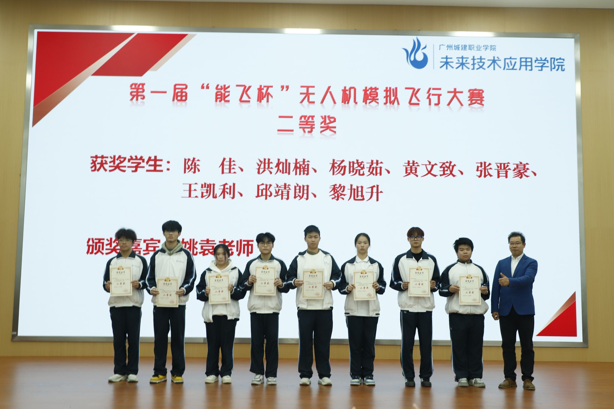 姚袁主任为“能飞杯”二等奖学生颁奖