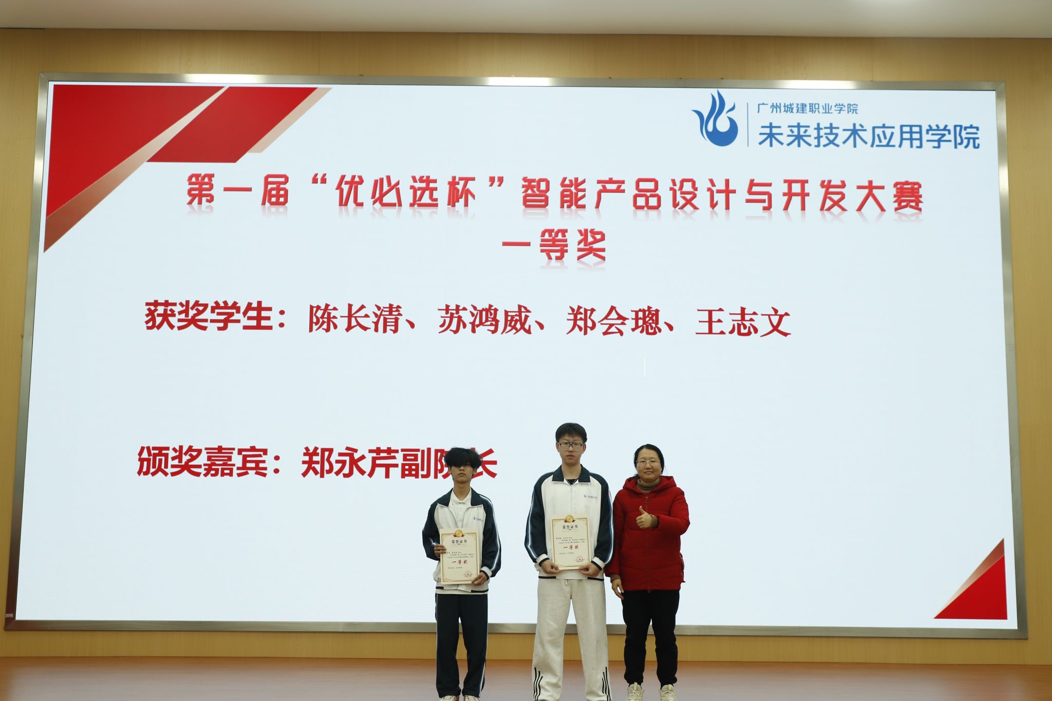 郑永芹副院长为“优必选杯”一等奖学生颁奖