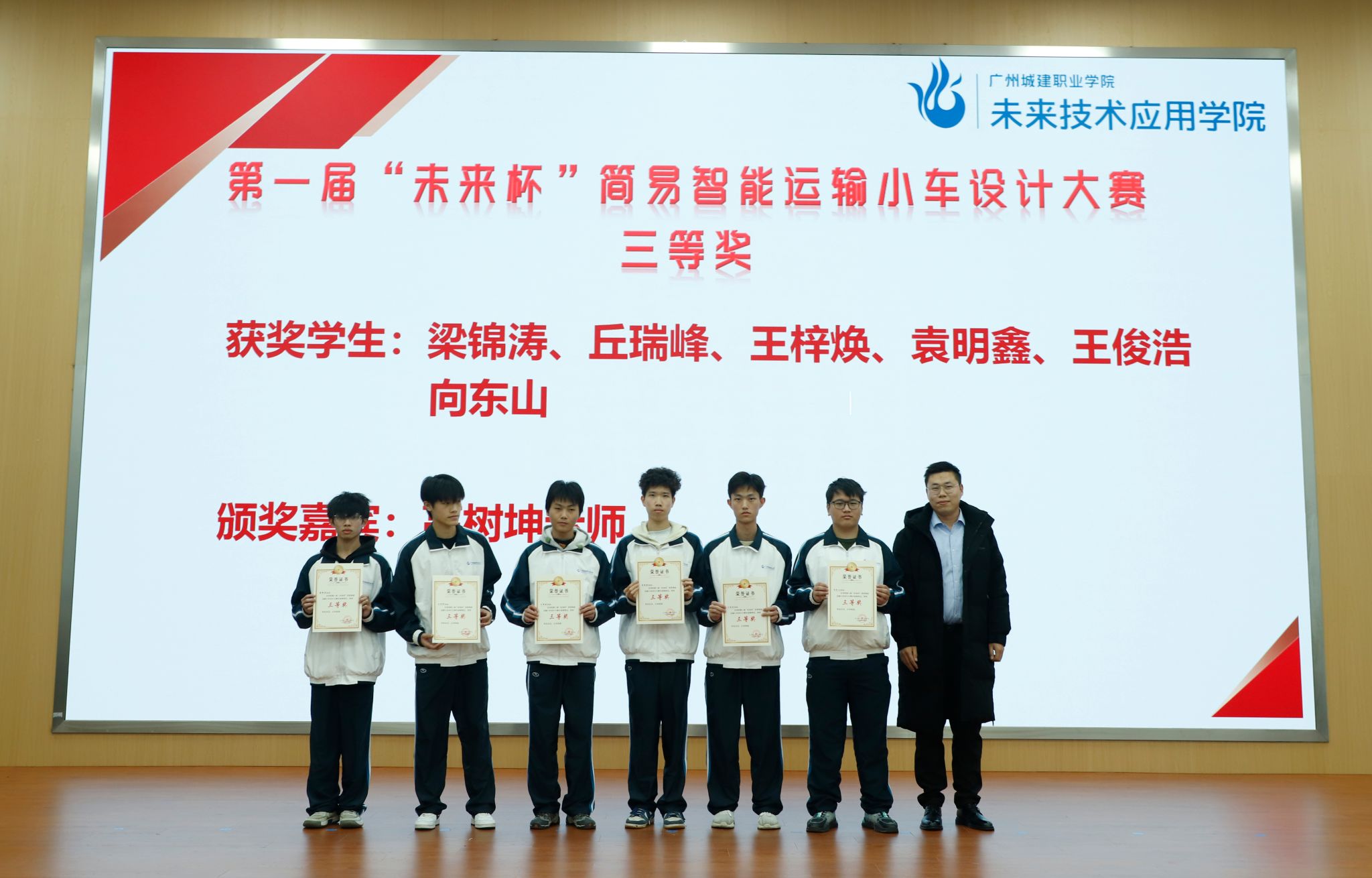 高树坤老师为“未来杯”三等奖学生颁奖
