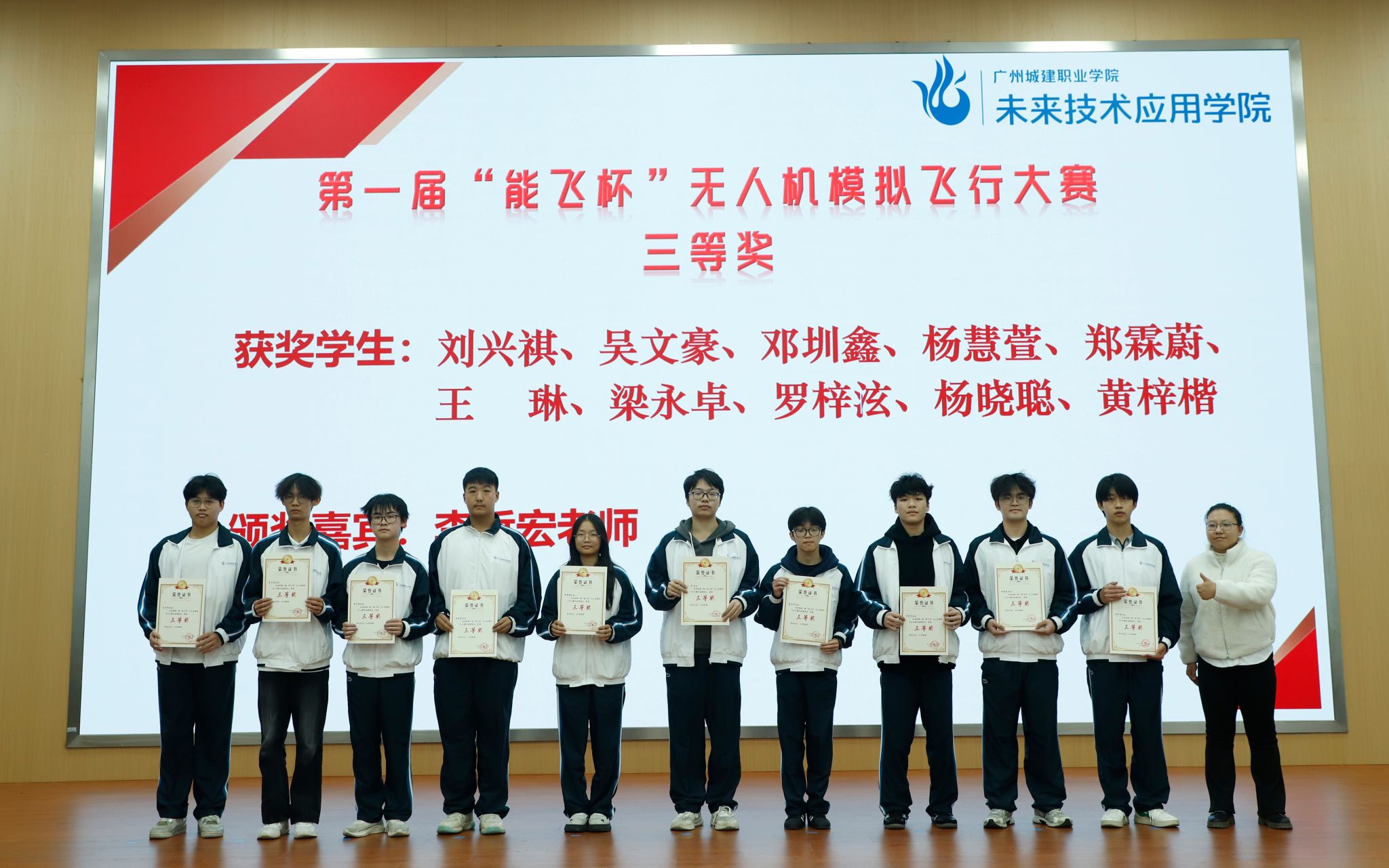 李哲宏副主任为“能飞杯”三等奖学生颁奖